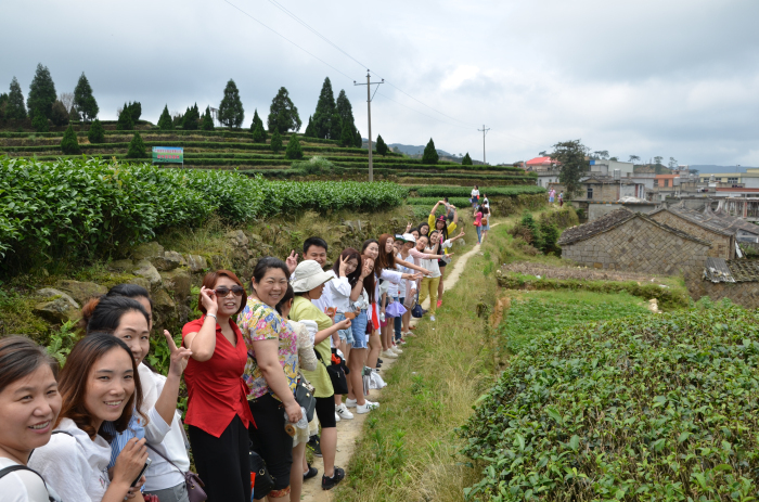 在导游的带领下,大部队向茶海明珠前行。