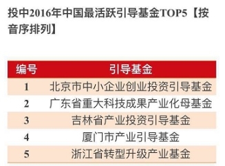 继获得清科集团政府引导基金排名第四位后,厦门创投受托管理的厦门市产业引导基金被评为“投中2016年中国最活跃引导基金TOP5”,获此殊荣的还有北京市中小企业创业投资引导基金、广东省重大科技成果产业化母基金、吉林省产业投资引导基金、浙江省转型升级产业基金。