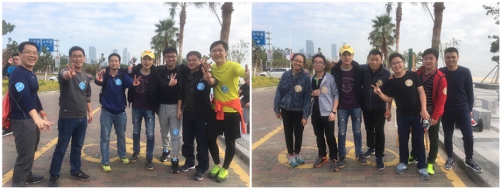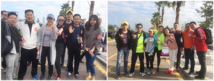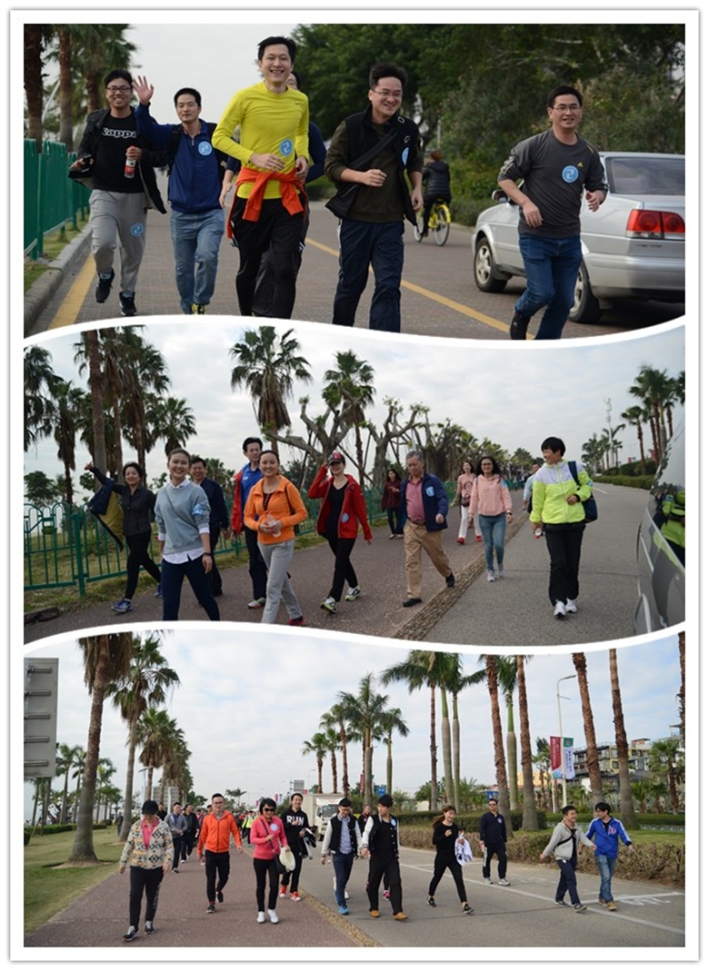 上午9点,热身活动后,随着许董的一声号令“出发”,102名参赛队员个个精神抖擞、斗志昂扬,冲向美丽的环岛路步行道,尽情感受着你追我赶的乐趣。
