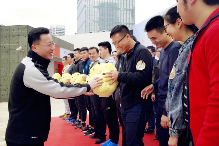 最终,12支队伍脱颖而出,其中置业黄1队赢得了团体第一名,信托金2队和本部蓝2队分别获第二、三名,获胜的队伍捧着美好寓意的吉祥物,都开心的笑了。