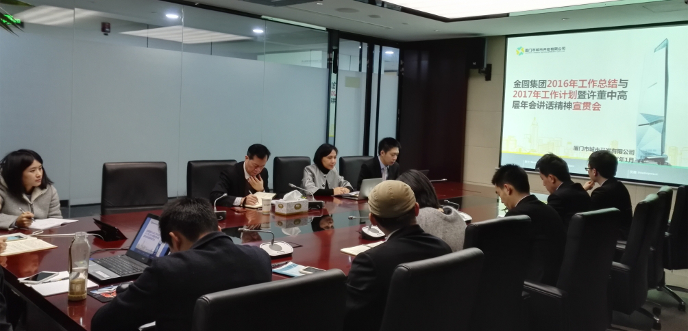 1月23日上午,城开公司黄昆明董事长主持召开2017年集团中高层年会精神宣贯会,城开公司邢晓毅副总及公司全体员工参会。