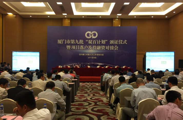 4月26日,厦门市第九批“双百计划”颁证仪式暨项目落户及投融资对接会在厦门隆重举行,厦门市担保有限公司(以下简称“市担保”)作为唯一一家受邀参会的担保公司出席参会。