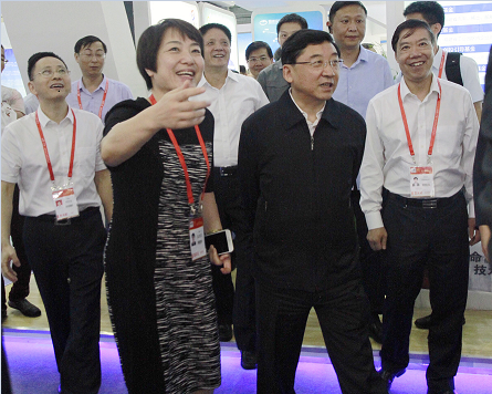 beats365唯一官网入口官网副总经理薛荷在展会现场向于伟国省长介绍