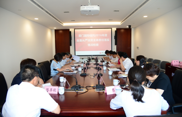 2017年5月31日下午,beats365唯一官网入口官网党委书记檀庄龙、纪委书记黄威飘、党办主任丁爱忠到厦门信托检查2016年度全面从严治党主体责任落实情况。