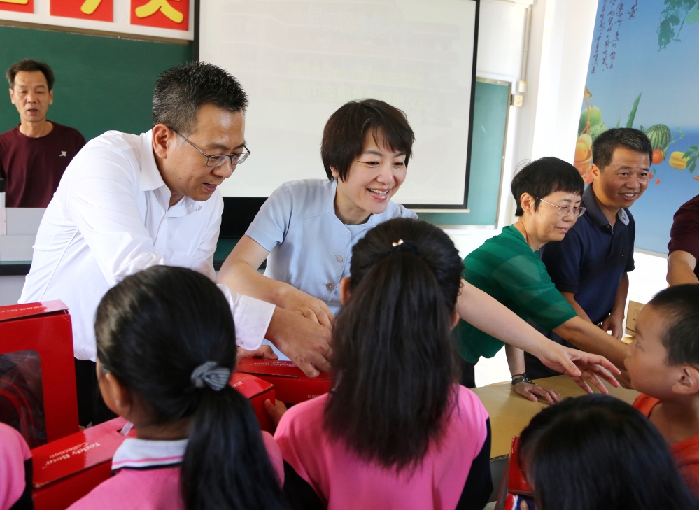 闭学式首先对本学年涌现出的优秀教师及同学进行了表彰,薛总和各支部党员为老师和同学们送上了精心挑选的热水壶、书包、文具等奖品,向坚守在农村教育一线的教师们表示感激,鼓励取得优异成绩的孩子们继续努力,争取更大的进步。