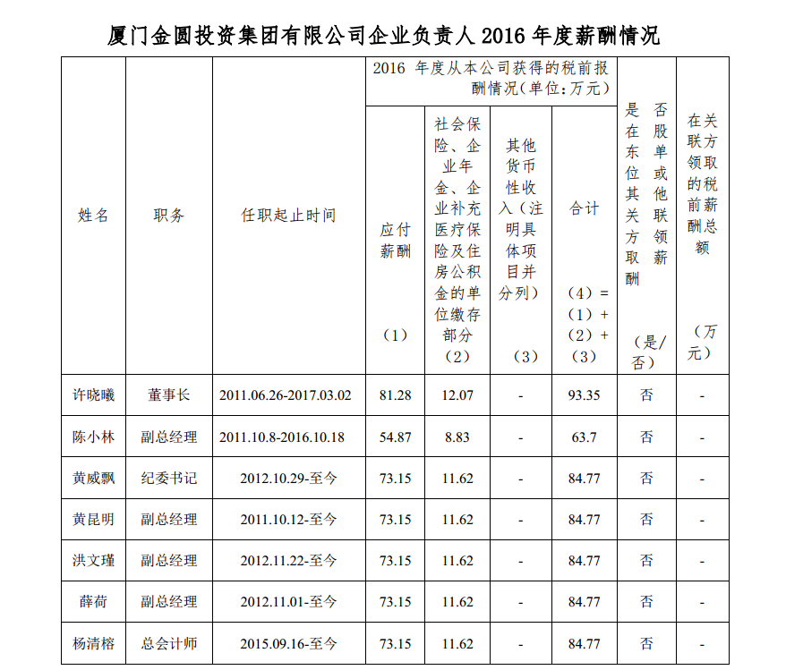 1.上表披露薪酬为我集团企业负责人2016年度全部应发税前薪酬。其中,第(1)项由市财政局(薪酬审核部门)核定,包括基本年薪、绩效年薪及任期激励收入。