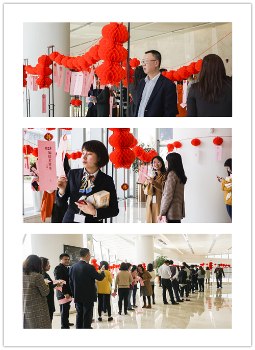 “猜灯谜”是一项趣味性很强的传统活动,深受喜爱。此次活动精心准备了近500条灯谜,在场人员各显其才,纷纷抢摘谜语,投入到谜底竞猜之中,气氛热烈。此外,蒙眼敲锣、“筷”运乒乓球、立定投环等活动趣味十足,在场人员积极参与,各显神通,活动现场欢声笑语不断。活动还设有丰富的小礼品,做到了人人可参与、个个有收获。活动中,集团党委书记、董事长檀庄龙亲临现场,关心和了解活动开展情况,并为大家送上元宵节诚挚的祝福。