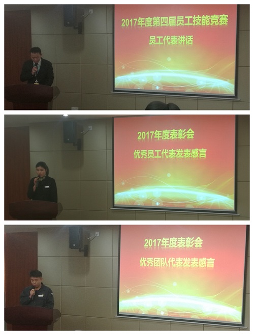 在简约而庄重的颁奖仪式后,安防主管刘先伟代表员工技能竞赛优胜团队、工程主管林树权代表公司年度优秀团队、客服员陈燕玲代表公司年度优秀员工分别进行了精彩发言。