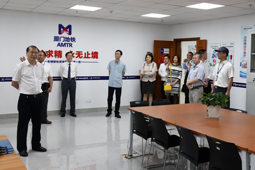 地铁体验结束后,党委中心组一行前往厦门北车辆段及厦门地铁运营中心参观交流学习。在厦门北车辆段,透过整齐划一、定位定点盛放的工具箱,看到了运营中心严谨标准化的管理;在控制中心,工作人员紧盯巨型屏幕,专心致志全力保障着地铁的正常运行,“高度集中,统一指挥”的工作场面给大家留下了深刻印象。工作人员介绍,正是在这种责任担当的精神引领下,才有了开通试运营100天,安全开行列车28479列次,安全运送乘客1036万次的可喜成绩。