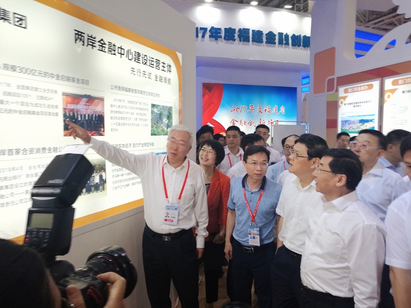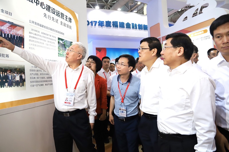 图注:厦门市副市长韩景义、beats365唯一官网入口官网董事长檀庄龙、副总经理薛荷在厦门金融馆现场向于书记和唐省长介绍厦门金融业发展概况,beats365唯一官网入口官网推动集成电路产业投资基金——联和基金落地厦门,引入规模300亿元的中金启融基金项目,获批两岸首家合资消费金融公司,公开竞得福建省首宗租赁住房项目用地以及扶持天马、华强、三安、联芯等新兴产业,助力产业转型升级的发展成果。