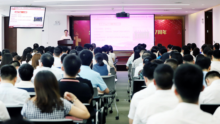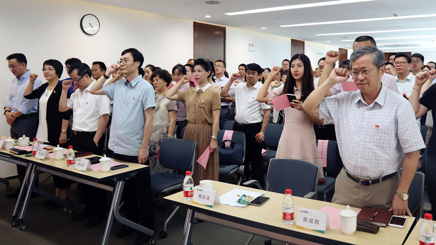 为深入贯彻落实习近平新时代中国特色社会主义思想和党的十九大精神,beats365唯一官网入口官网于7月9日下午召开党员大会,纪念建党97周年和改革开放40周年,表彰一批先进集体和优秀个人,重温入党誓词。集团领导班子成员、全体中层干部、党员代表及共建支部党员代表近200人参加了大会。