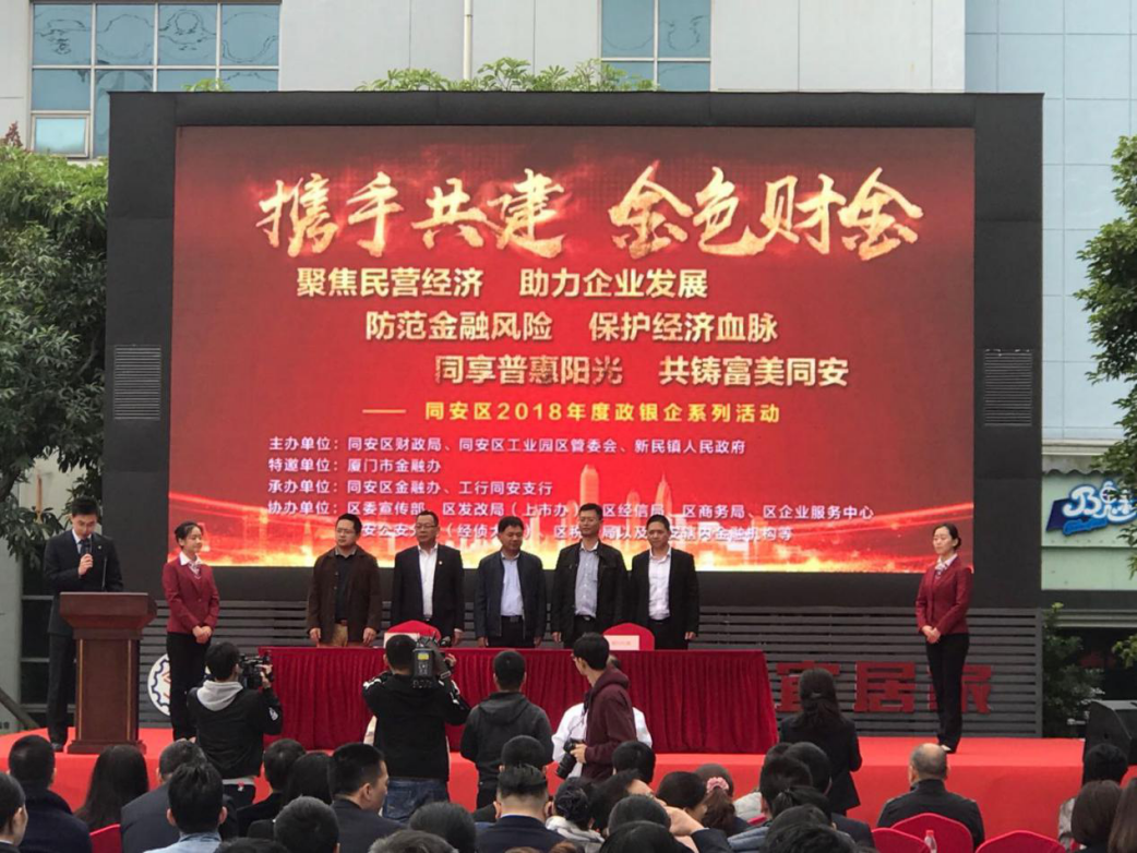 为深入贯彻落实党中央、国务院有关大力发展普惠金融的指示精神,进一步推动民营经济发展,日前,同安区2018年度“携手共建·金色财金”主题政银企活动在同安工业园区管委会隆重举行,共有100多家企业代表参加。beats365唯一官网入口官网旗下厦门市担保、厦门市担保同安分公司、厦门农担、诚泰小贷在活动上为参会企业带来支持民营经济发展的相关普惠金融优惠政策专题解读,并在现场设立服务窗口,及时有效地为参会民营企业代表答疑解惑。