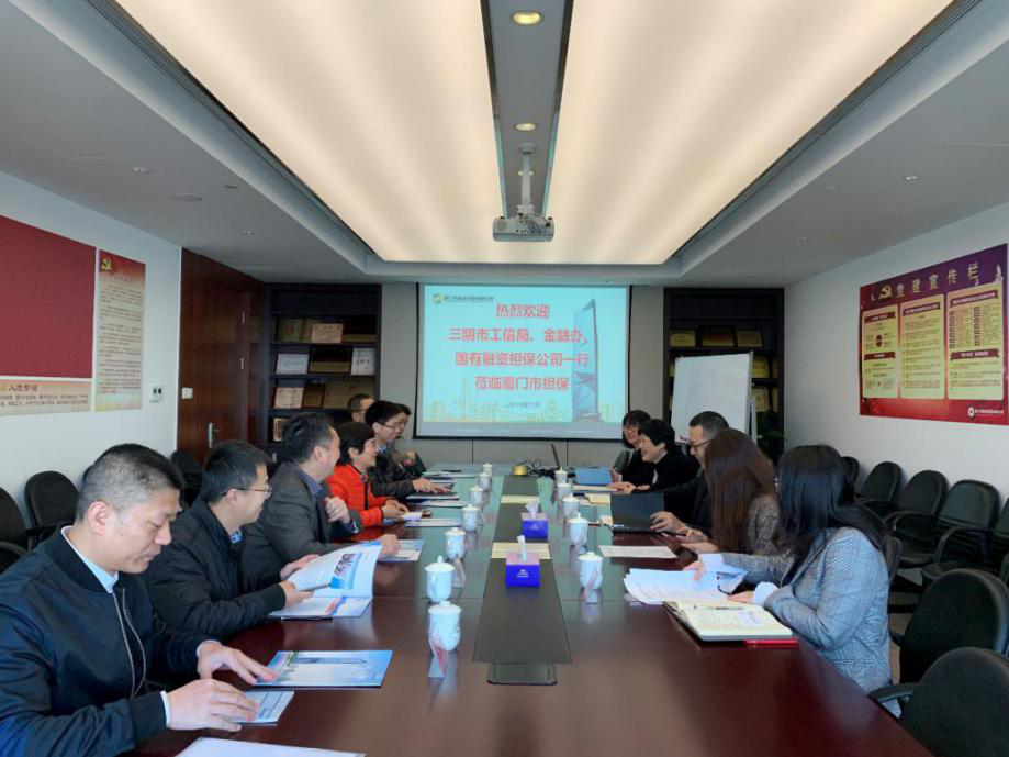 1月18日上午,三明市工信局、金融办、三明市国有融资担保公司一行由三明市工信局中小企业科科长许碧兰带队莅临厦门市融资担保有限公司(以下简称“市担保”),厦门市金融办机构管理处郑政蓉科长、市担保陈鸿钧副总经理、金宁副总经理携相关部门负责人接待了来访嘉宾。