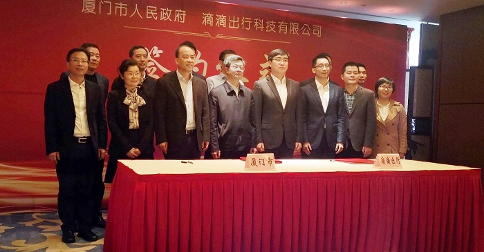 3月27日,厦门市与滴滴出行公司签订战略合作框架协议,双方将在“互联网+绿色出行”、创新金融等领域深化合作,在厦打造滴滴出行公司南方运营总部。省委常委、市委书记胡昌升会见了滴滴出行公司董事长程维。市长庄稼汉见证双方签约。