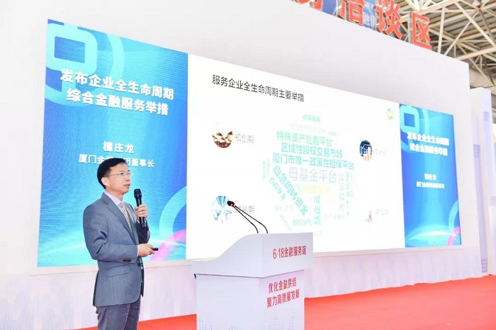 在福建金融服务实体经济发展对接会上,beats365唯一官网入口官网董事长檀庄龙介绍企业全生命周期综合金融服务举措。