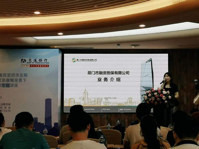 为促进民营企业健康发展,改善中小企业融资环境,进一步激发集美区民营经济的发展活力,6月20日下午,由集美区工商业联合会、集美区民营办和交通银行厦门分行联合主办的以“优化营商环境,促进集美民营经济发展”为主题的政企银对接会在厦门灵玲大酒店举办,本次活动吸引了近100家企业参加,厦门市担保作为主讲嘉宾之一受邀出席。