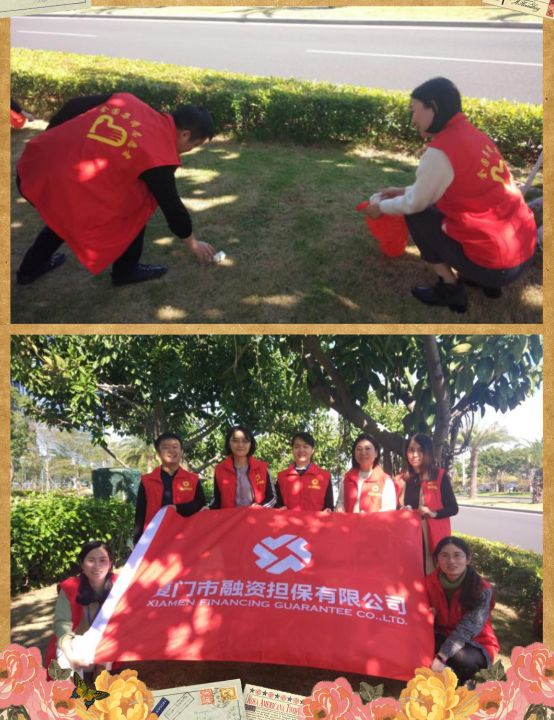 图2/美丽厦门共同缔造,筑起温馨大家庭。市担保风控部组织员工对厦门国际会展中心区域的步道和绿化带开展清洁行动。