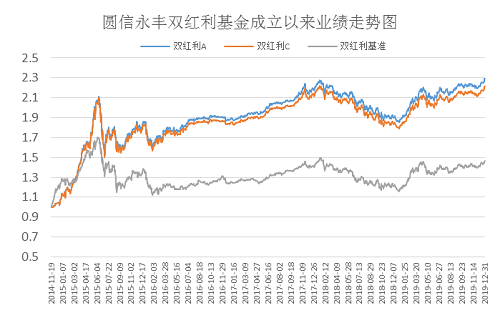 2014年11月19日成立以来,圆信永丰双红利A累计收益率达到183.13%。得到广大媒体和投资者的认可,2018年,圆信永丰双红利先后获得由证券时报和上海证券报颁发的第13届中国基金业明星基金奖·三年持续回报平衡混合型明星基金奖以及第十五届金基金·三年期偏股混合型基金奖。在2019年,圆信永丰双红利A单年度的收益率为45.75%,超过业绩比较基准20.68个百分点(业绩比较基准25.07%),在主动混合开放型基金中位于前1/4。