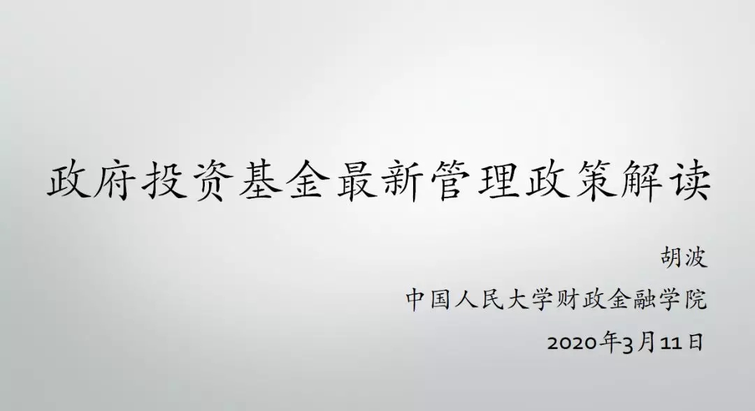 胡波教授从宏观背景、政府投资基金的历史运营情况、当前政府投资基金设立与运作中的主要问题、建议四个方面进行解读。