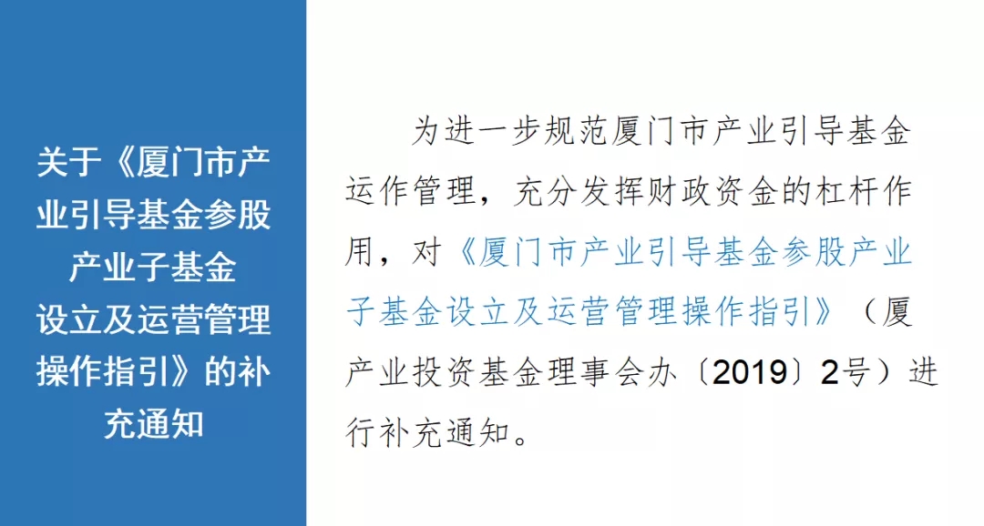 《关于<厦门市产业引导基金参股产业子基金设立及运营管理操作指引>的补充通知》