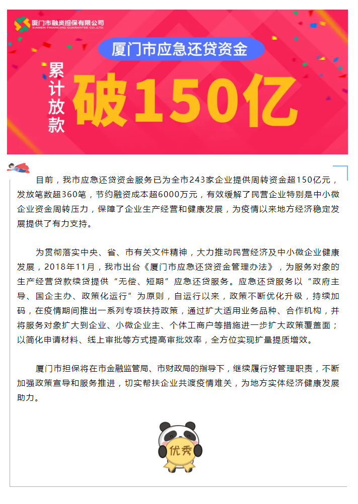 厦门市应急还贷资金累计放款突破150亿元大关