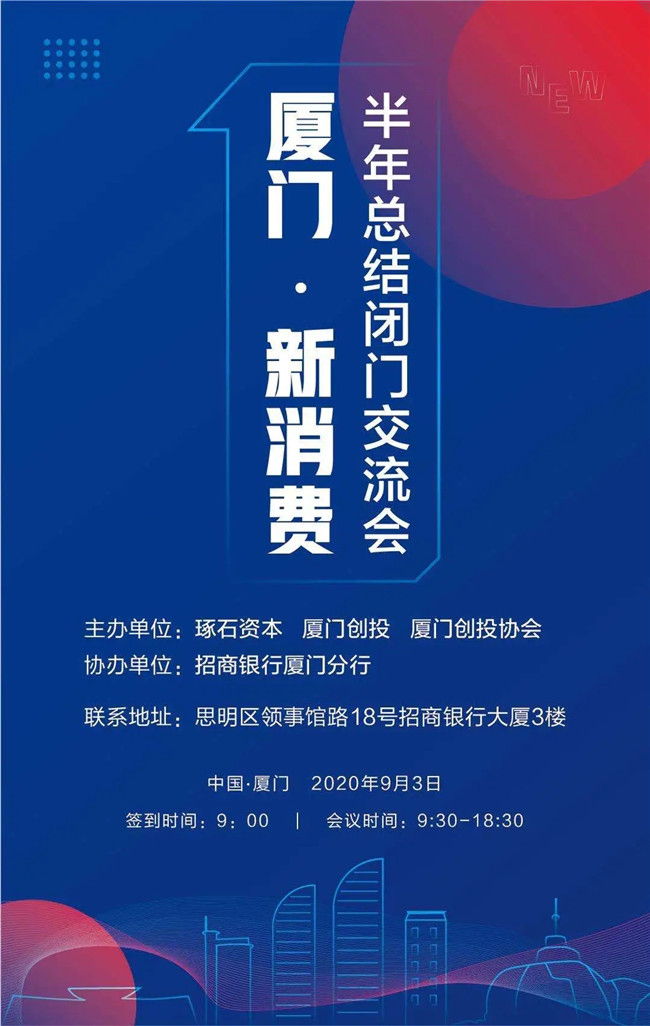9月3日,琢石资本、厦门市创业投资有限公司(简称“厦门创投”)、厦门创业投资有限公司协会(简称“厦门创投协会”)联合主办、招商银行厦门分行协办的《新消费:半年总结闭门交流会》在美丽的厦门召开。此次交流会的参会品牌合计80家,其中外地品牌企业47家、本地品牌企业33家,参会人数逾150人,是一场空前的消费产业大会。