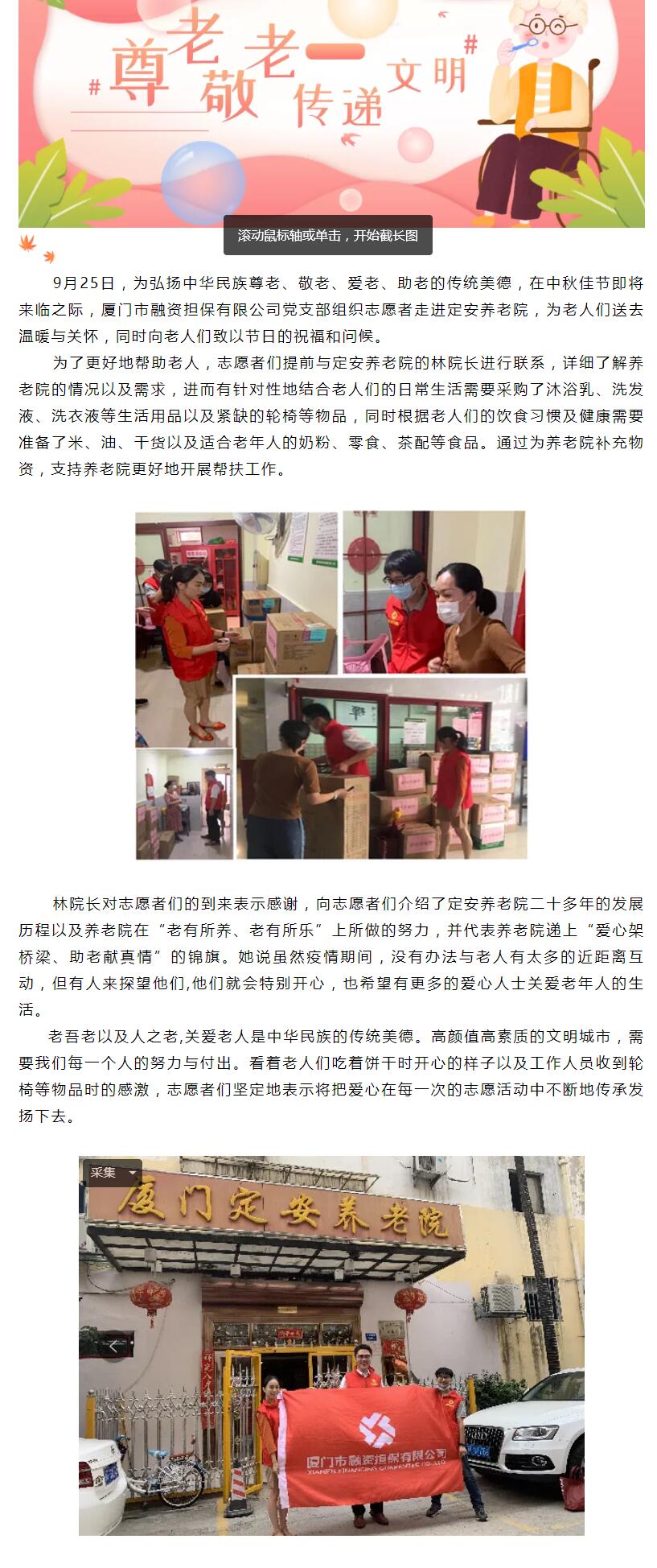 文明创建 | 厦门市担保党支部走进定安养老院开展文明创建活动