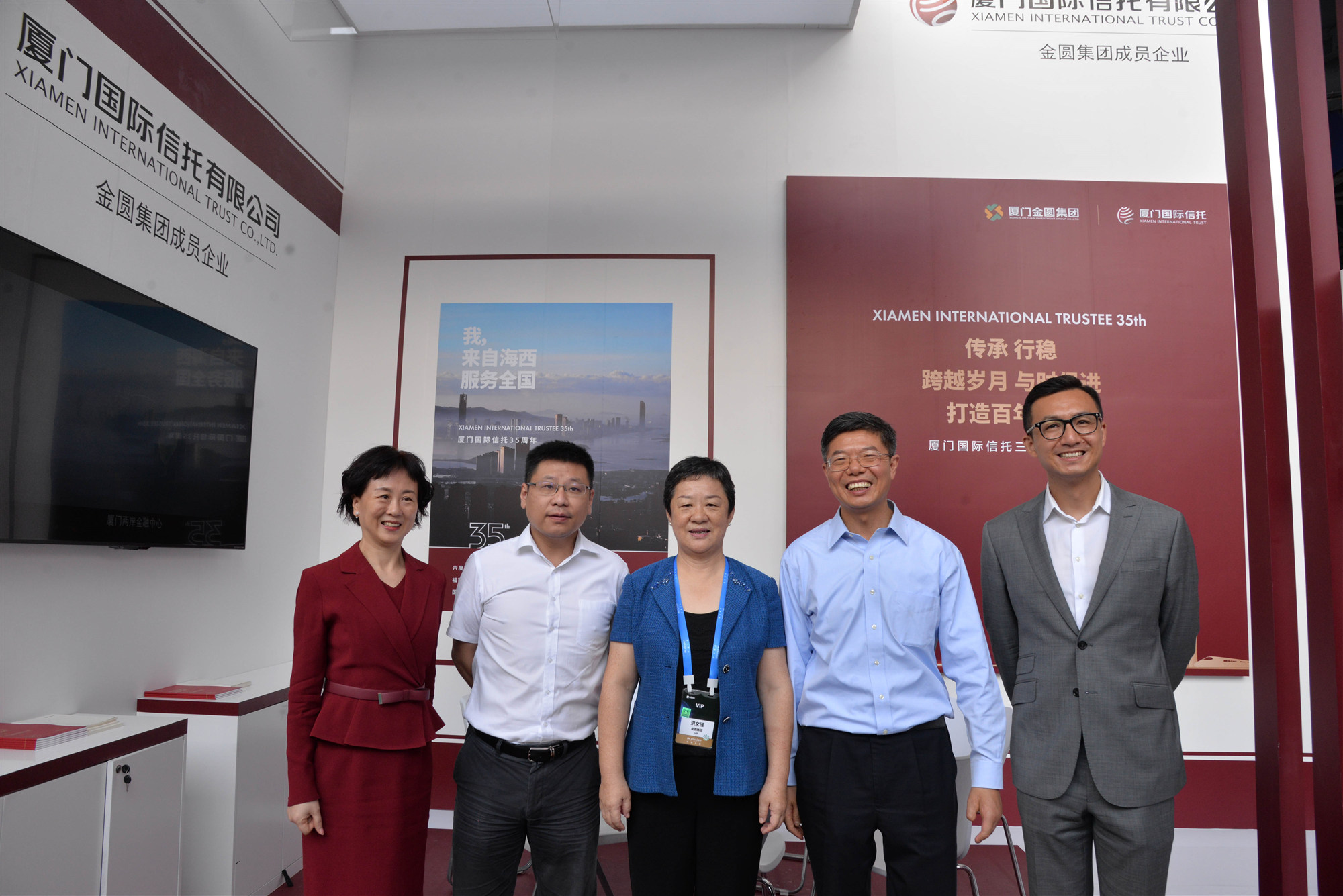 本次外滩大会,恰逢厦门国际信托35周年司庆之际。因此,厦门国际信托在现场搭建的互动展示区,也以司庆主题色为基调,通过宣传视频和业务介绍手册以及会场内多处的广告露出,使现场的其他参展机构和来访宾客有机会详细了解beats365唯一官网入口官网和公司的特色业务。