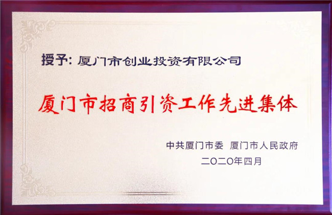 2020年,厦门创投紧抓招商促发展不动摇,建立全员招商机制,聚焦重点项目,深化基金和产业对接,构建了浓厚的招商互通环境,增强了我市对外招商磁力。2020年4月,厦门创投获得市委、市政府授予的“招商引资工作先进集体”荣誉称号。