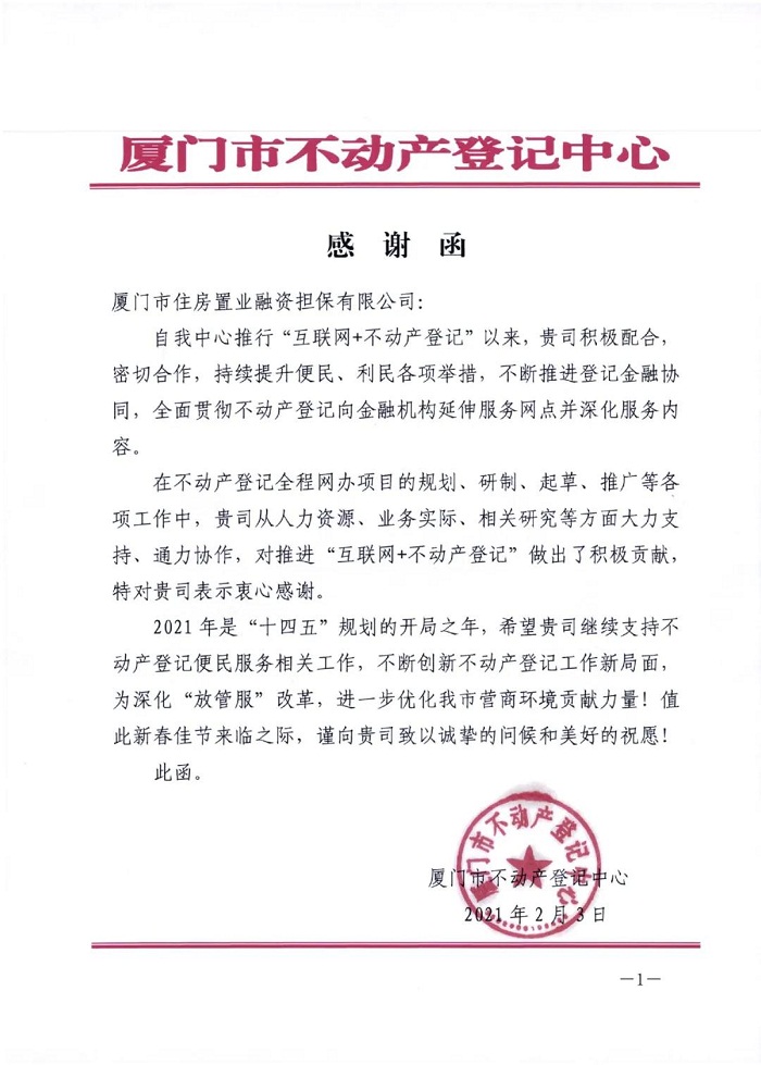 新春伊始,厦房担保就接连收到两份“礼物”,来自厦门市不动产登记中心的感谢信以及来自客户陈先生的锦旗,让我们一起来看看吧。