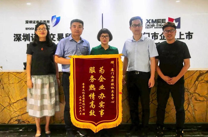 (普普文化向厦门两岸股权交易中心送上锦旗)