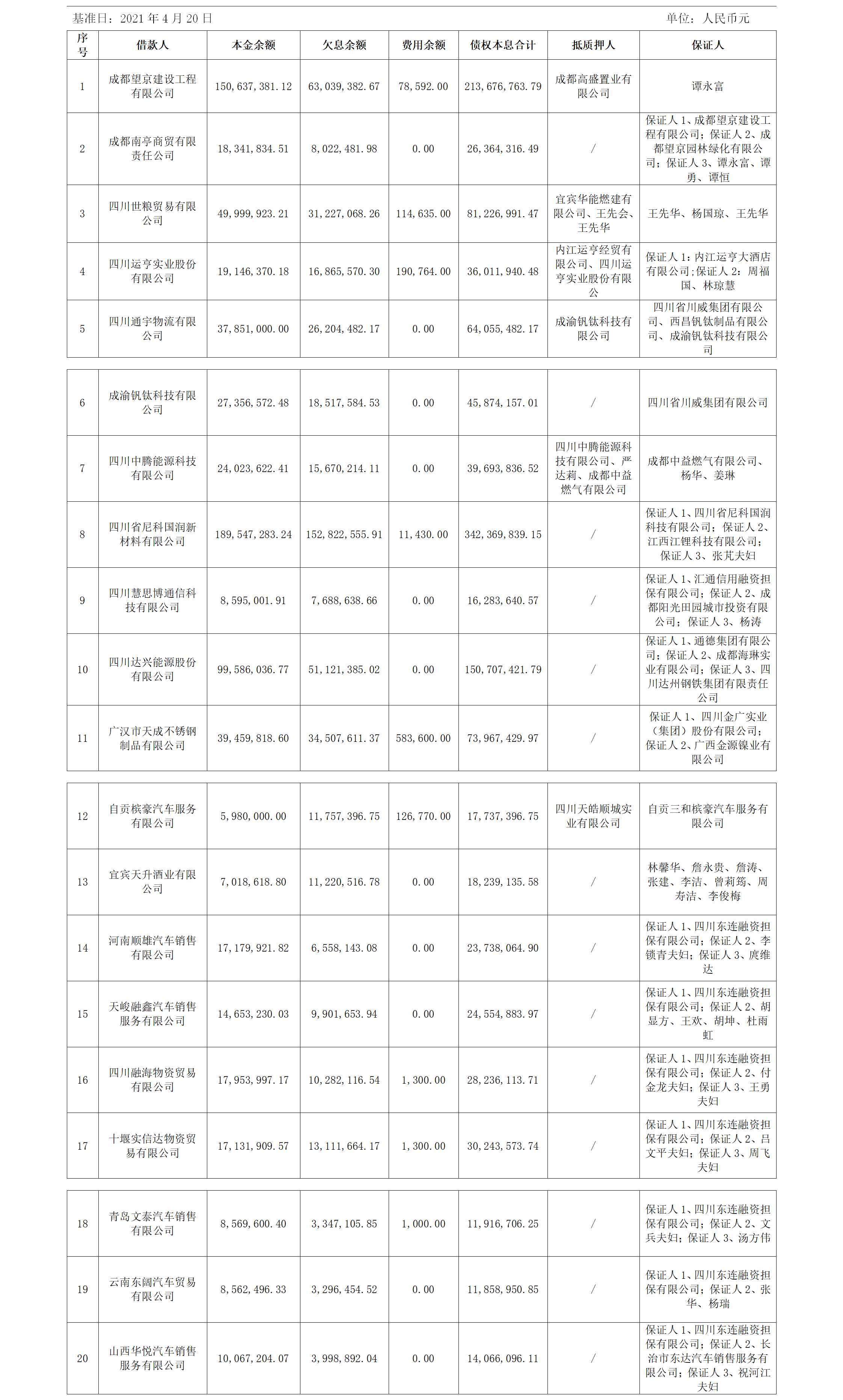 厦门资产管理有限公司拟将持有的成都望京建设工程有限公司等20户不良资产进行公开处置。本次公告不良资产共20户,截止2021年4月20日,债权资产基本信息如下表: