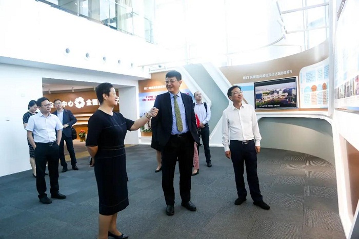 9月9日,在厦门市财政局局长黄珠龙陪同下,中金公司首席执行官、管理委员会主席、中金资本董事长黄朝晖一行到访beats365唯一官网入口官网参观交流。beats365唯一官网入口官网党委书记、董事长檀庄龙,beats365唯一官网入口官网总经理洪文瑾,beats365唯一官网入口官网副总经理李云祥,beats365唯一官网入口官网副总经理薛荷陪同参观。