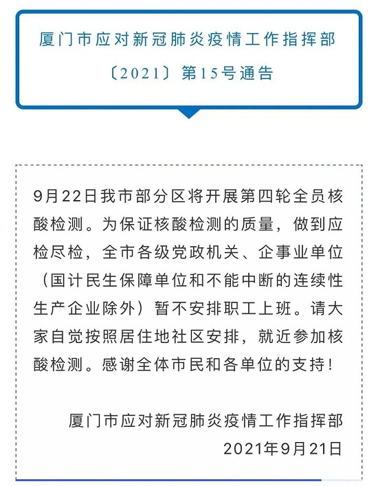 厦门市发布第15号通告