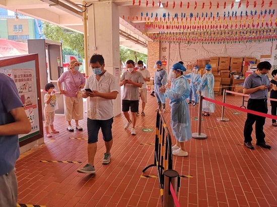 beats365唯一官网入口官网志愿者们在前埔东社区第四轮核酸检测现场开展服务。