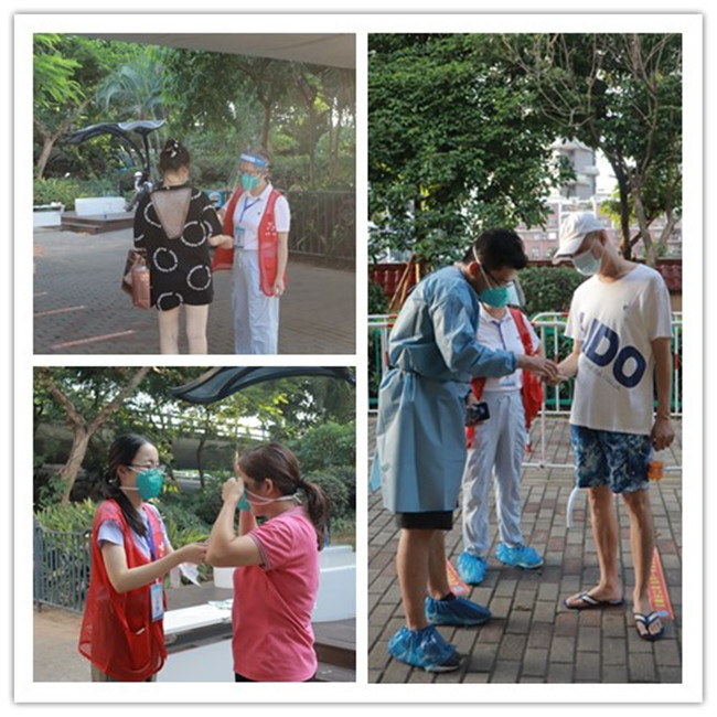 在福海社区核酸检测采样点,厦门创投志愿者们穿上防护服,主动参与到体温监测、核验健康码等疫情防控志愿服务,协助医务人员维持现场秩序,为群众答疑解惑。