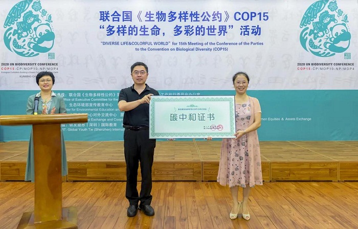厦门产权交易中心(厦门市碳和排污权交易中心)对本次联合国COP15平行活动进行了碳中和,成功实现了国家双碳战略与联合国生物多样性工作融合发展,为联合国生物多样性工作贡献厦门力量。