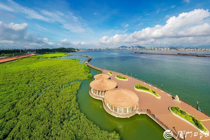 下潭尾滨海湿地生态公园。(厦门日报记者 黄嵘 航拍器摄)
