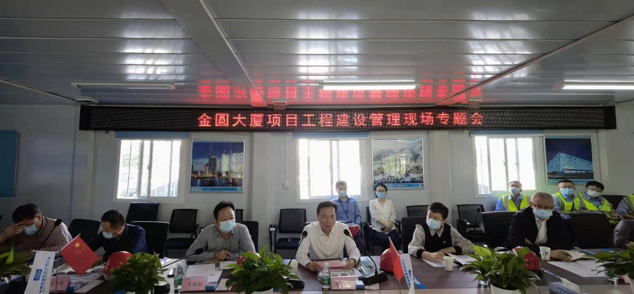 现场专题会上,开发公司项目负责人汇报了项目总体计划目标、前期工程进展及后续工作安排,中建一局项目负责人汇报了公司背景、项目主体工程筹备进展及施工计划安排、组织管理及保障措施。参建各方单位代表从筹备开局、高效建设、科技建楼、诚信履约、安全生产等方面展开了工作交流。