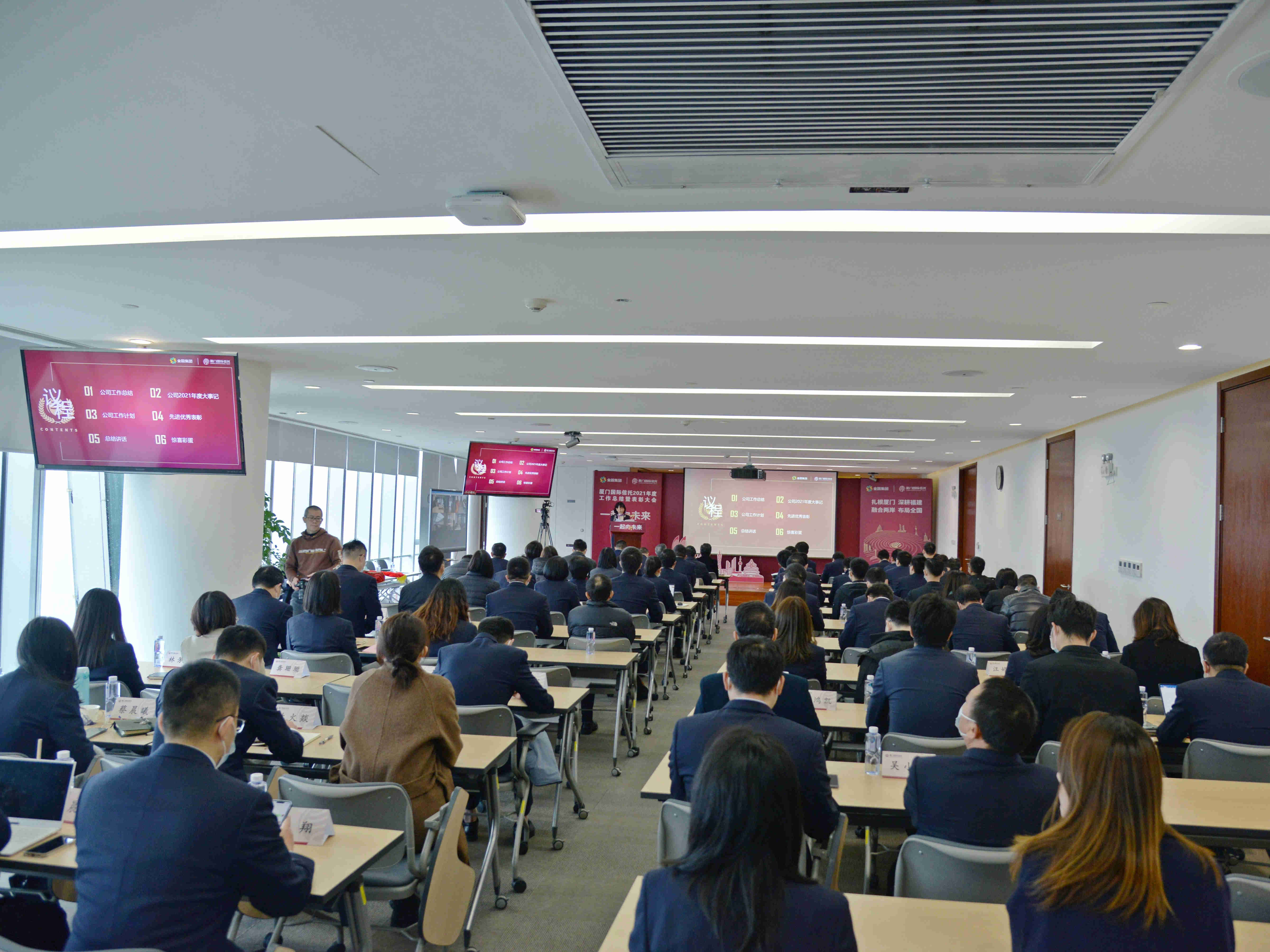 大会由公司副总经理郭韶红主持。公司党委副书记、总经理胡荣炜首先作2021年度党委工作和经营工作总结报告。2021年,面对史无前例的复杂经营环境,公司在党委的带领下,不断提高政治站位,发挥党建引领作用,深化党风廉政建设,上下一心,展现了强大的战斗力。全体员工在经营管理层的带领下,坚持“放弃幻想、把握机遇、开拓思路、审慎经营”的经营方针,明确并执行五年战略规划,深化业务策略转型与专业化建设,深入开展“守正”年建设,有效把控经营风险,落实监管压降,经营业绩和转型发展达成了预期成效。