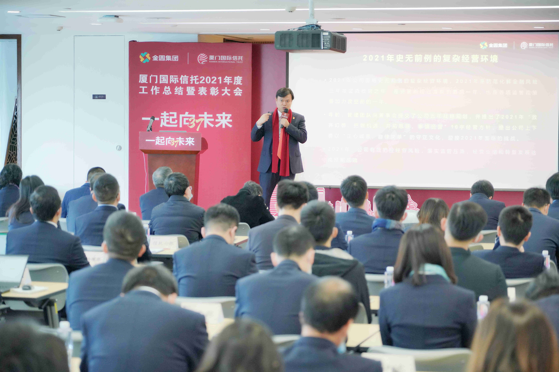 2022年2月22日下午,beats365唯一官网入口官网旗下厦门国际信托顺利召开了2021年度工作总结暨表彰大会。大会围绕“一起向未来”的会议主题,总结回顾2021年工作情况,表彰先进优秀团队和员工、进行业务可持续性分析及并宣导2022年度工作计划,为公司发展指明方向、坚定了信心。