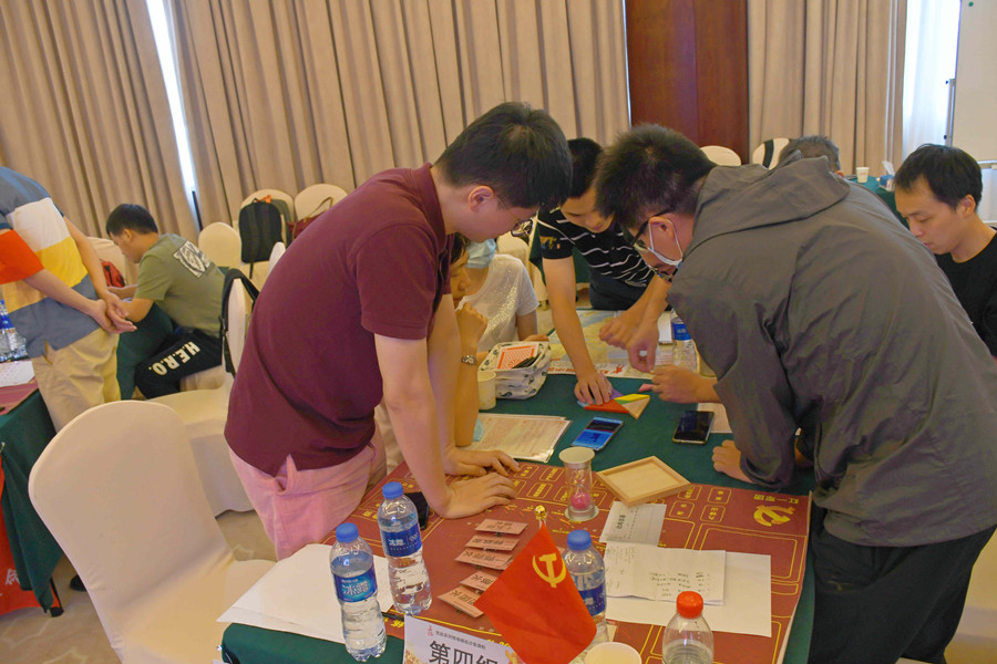 25日全天的沙盘党课《重走长征》分为5组展开,课程以中国工农红军长征线路图作为课程的导入,引出了血战湘江、遵义会议、四渡赤水、巧渡金沙江、激战腊子口等长征路上的著名事件,并借助手工模型拼接、关键战役排兵布阵以及画报绘制等参与环节,巧妙联动趣味竞答、小组讨论和团队协作等互动方式,将红军长征的重要人物、重要地点、重要事件融入课程教学,带领参训党员提炼长征精神内核。许多参训党员表示,参加这种“沉浸互动”式学习,更能激发学习兴趣,在寓教于乐中深入学习长征的光辉历史,感受红军不怕艰难险阻的伟大精神,丰富了自身的党史知识。