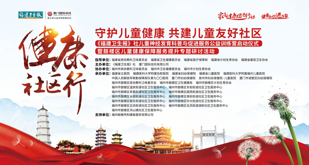 2022年8月13日上午9:00,由《福建卫生报》社与厦门国际信托有限公司联合主办的“儿童神经发育科普与促进服务公益训练营”活动,将在福州启动。来自福建卫生报的健康大使以及福州、泉州、厦门等公立医院的儿科专家,将通过宣传科普、公益筛查、专家看诊、专家随访、康复训练等一系列公益项目让更多家庭直接受益。