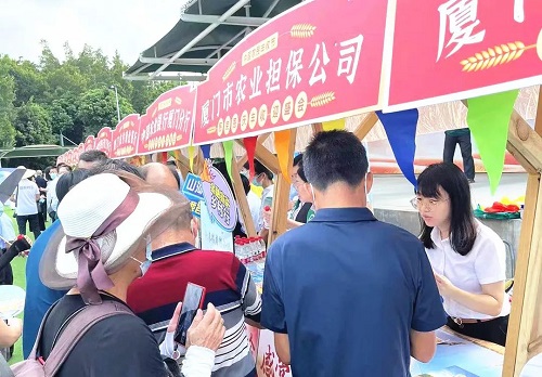 在厦门2022年中国农民丰收节活动中,同安区农业农林局、厦门农担、同安农银村镇银行举行支持同安区高素质农民发展座谈会暨贷款担保业务合作的签约仪式,三方围绕运用金融产品促进乡村人才振兴方面达成框架协议。在丰收节当日,厦门农担应邀参加丰收节盛会,向众多农民朋友介绍农业担保政策及产品,吸引了众多参展农业企业及市民,现场人头攒动、热闹非凡。