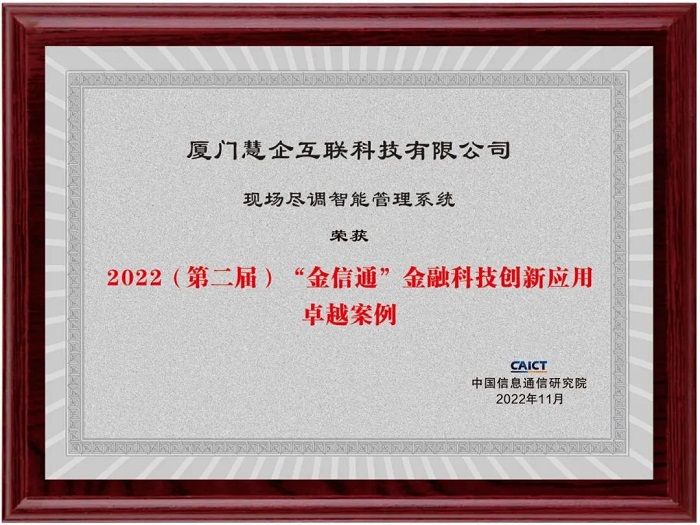 “现场尽调智能管理系统”由厦门慧企互联科技有限公司(厦门中小在线全资子公司)自主研发,从全国银行、保险、证券、期货、基金等行业共430个金融科技应用落地案例中,历经公开投票、案例初筛、案例函评、线上终评等环节后脱颖而出,成功入选金融科技创新应用卓越案例,充分体现了厦门中小在线金融科技研发实力和应用成效。