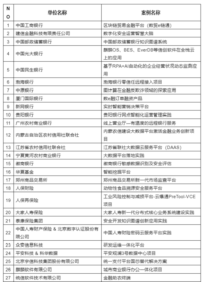 附:2022(第二届)“金信通”金融科技创新应用卓越案例完整名单(名单排名不分先后)