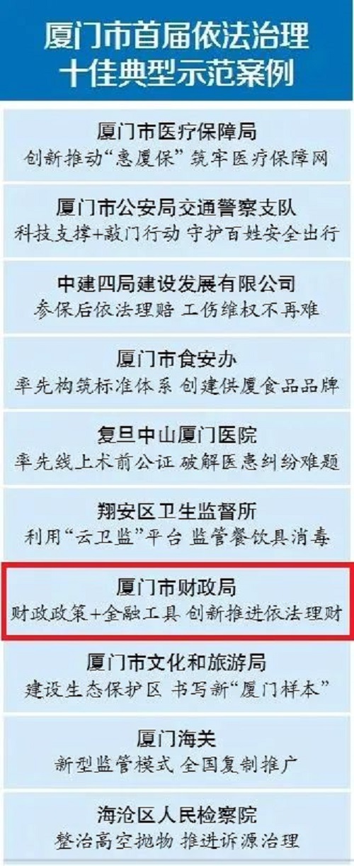 厦门市财政局依法治理示范案例