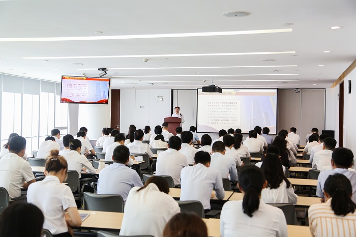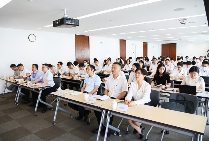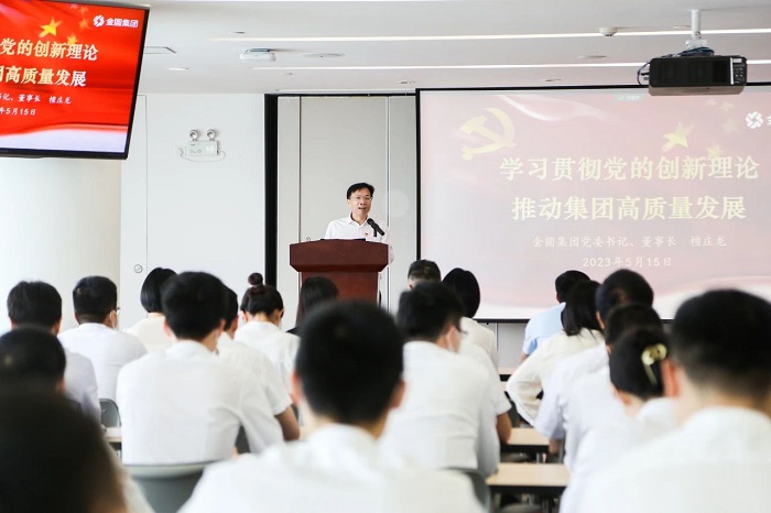 为深入推进学习贯彻习近平新时代中国特色社会主义思想主题教育走深走实,5月15日,beats365唯一官网入口官网党委书记、董事长檀庄龙以《学习贯彻党的创新理论,推动集团高质量发展》为主题,为集团党委领导班子、集团本部党员、挂钩党支部党员、青年智库党员、团员青年代表等讲授了一堂生动的党课。市委第7巡回指导组副组长姜金灿、成员柯雪芳到会指导。