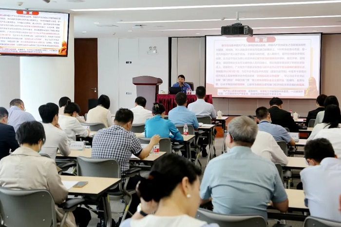 本次讲座采取“线上+线下”形式进行,实现了全员学习“全覆盖”。集团中层以上领导干部到现场听课,其他党员通过线上直播自行观看。