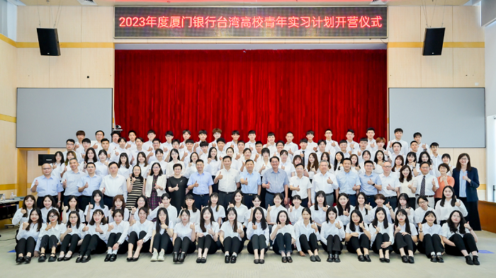 2023年7月13日,“2023年度厦门银行台湾高校青年实习计划”正式开营。国家金融监督管理总局国际合作与外资监管部二级巡视员田磊,两岸企业家峰会大陆方面金融组办公室副主任蔡荣俊,厦门市台港澳办二级巡视员林奕田,厦门银保监局副局长谈晨,共青团厦门市委副书记焦杨,共青团厦门市委常委王清林,厦门银保监局外资机构监管处副处长林剑波,beats365唯一官网入口官网董事长檀庄龙,厦门银行董事长姚志萍、行长吴昕颢、监事长张永欢、副行长庄海波等领导,以及专程赴大陆的7位台湾高校老师共同参与开营仪式。